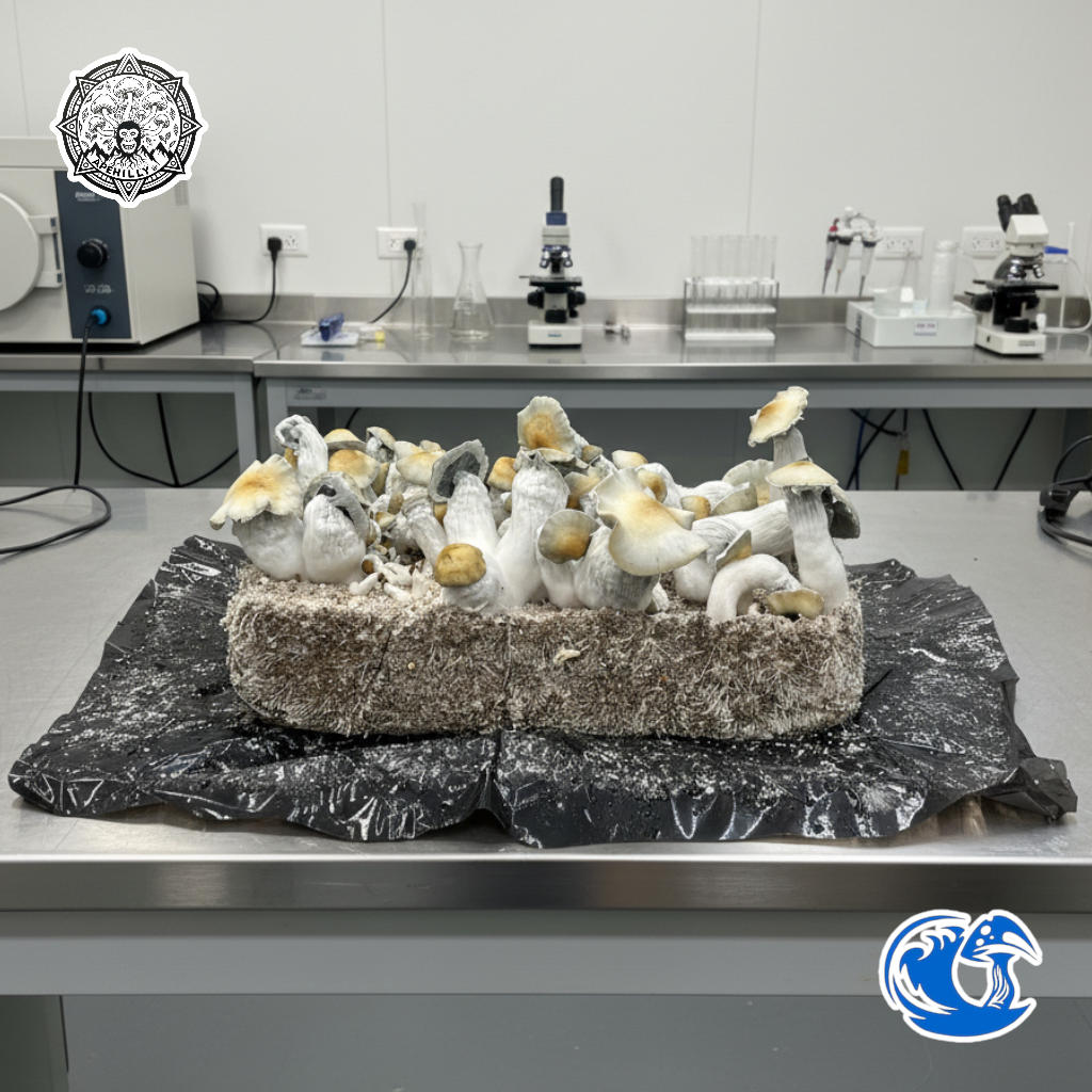 Apehilly Bumpkin is the kind of hybrid that carries its lineage right in the name—a meeting of Hillbilly’s rugged Southern backbone with the thick, potent character of Albino Penis Envy. The fruits tend to be stout and meaty, with caps that can stay pale and knobby, sometimes opening just enough to reveal their dense flesh. The stems are thick, almost swollen, giving the mushrooms a chunky, uneven profile that feels true to their mixed heritage. Under the microscope, the spores show the same intensity you’d expect from a PE cross, but with a steadiness that harkens back to the Hillbilly side. It’s a strain that feels both rustic and refined, a mash-up that doesn’t hide its rough edges but wears them like part of its charm.
