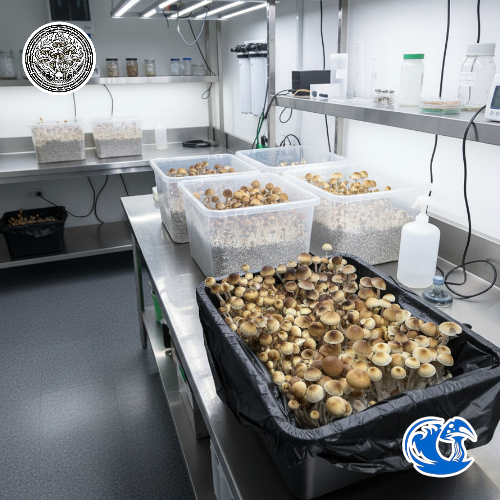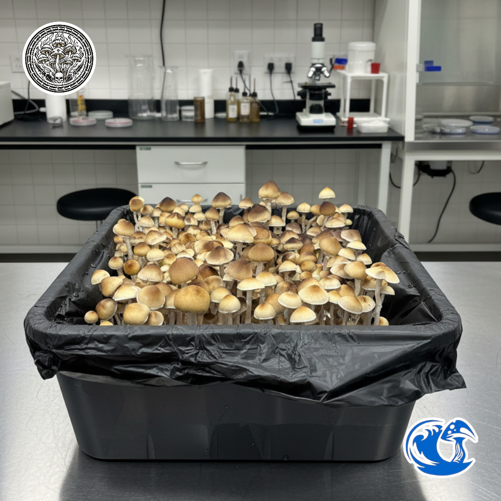 Menace carries with it a bit of Texas folklore. It first showed up in the early 2000s on a ranch outside Houston, where hobbyist “Lostfreddy” noticed cubes with unusual vigor springing from horse manure. The story goes that another collaborator, known as P. Menace, worked to isolate the boldest phenotype from those fruits, and over time the strain held steady—thick stems, broad caps, and a kind of rugged reliability that reflects its Gulf Coast roots. Menace has since become a reference point in Southern U.S. mycology, often compared to classics like Texas Orange Cap or Purple Mystic. Its heritage feels grounded in the land it came from: humble manure beds, warm Texas air, and a keen eye that saw something worth saving.